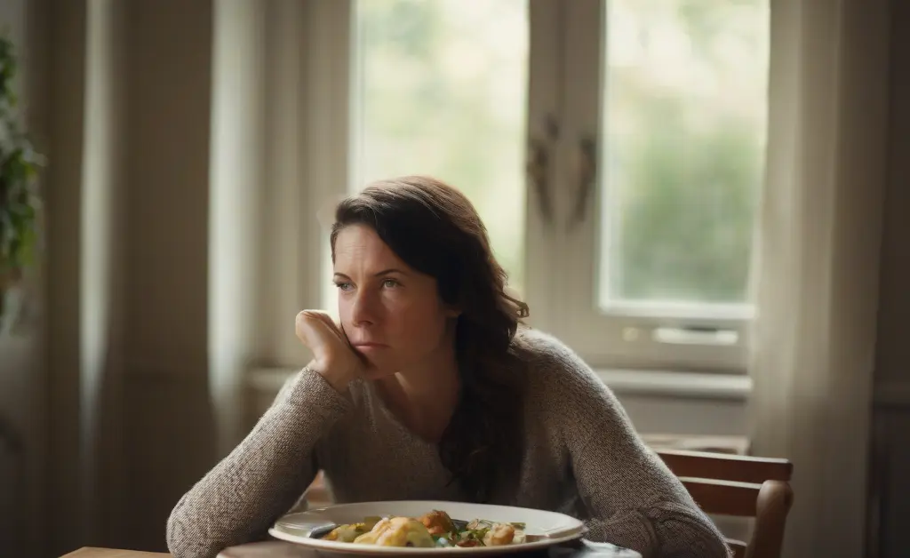 A thoughtful expectant mother researches the safety of consuming maitake mushroom while pregnant on her tablet in a bright, cozy living room.