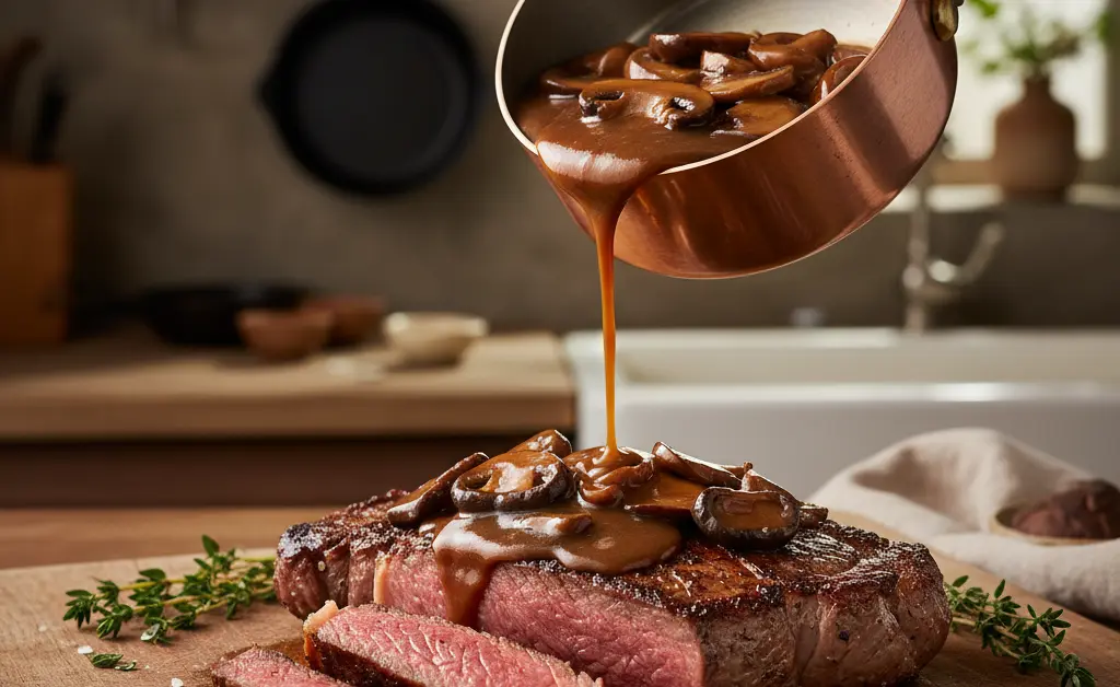 This luxurious sauce combines the pungent, creamy notes of Gorgonzola cheese with the savory depth of shiitake mushrooms. Start by sautéing finely chopped shiitake mushrooms with a hint of garlic and fresh thyme until they are tender. Deglaze the pan with a splash of white wine or broth, then stir in heavy cream and crumble in Gorgonzola cheese. Allow the sauce to gently simmer and thicken, melting the cheese into a smooth, piquant concoction. The robust flavor of the Gorgonzola beautifully complements the earthy mushrooms and the rich taste of the beef, creating a sophisticated and memorable dish.