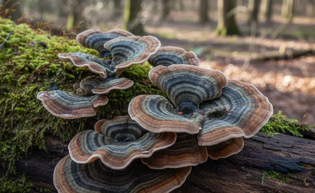 Picture a crisp morning walk through a local woodland, the air still damp from overnight rain. As you navigate the winding path, your eye catches a series of strikingly colored, fan-shaped fungi adorning a decaying log. Their distinct bands of earthy tones – grays, browns, and blues – create a natural tapestry, prompting a moment of contemplation about the forest’s hidden life. This common observation often leads to questions about identification and purpose. Among the myriad species encountered, the robust and ubiquitous trametes versicolor, also known as the Turkey Tail mushroom, stands out. This article aims to demystify this fascinating organism, providing a comprehensive guide to its identification, exploring its vital ecological role, and outlining its scientific classification. Understanding these characteristics allows for a deeper appreciation of its presence in natural environments.